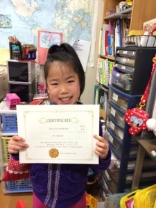 初めての英語の賞状に大喜びです♪