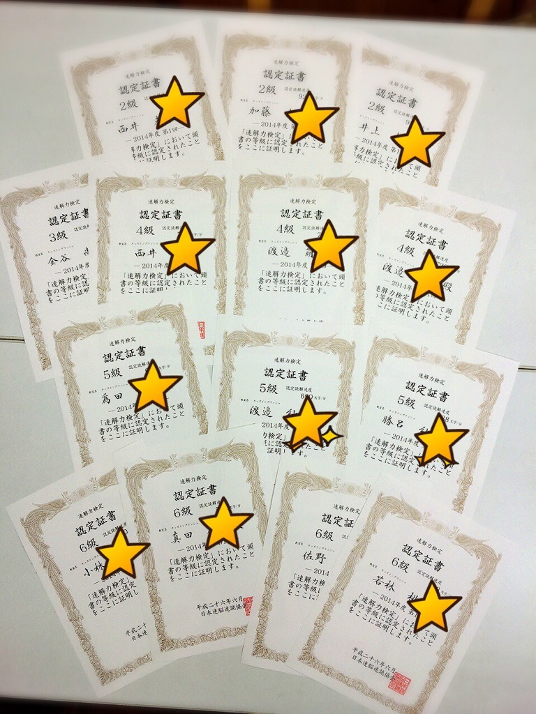 特に凄い 6級以上のみんなの賞状を公開です!