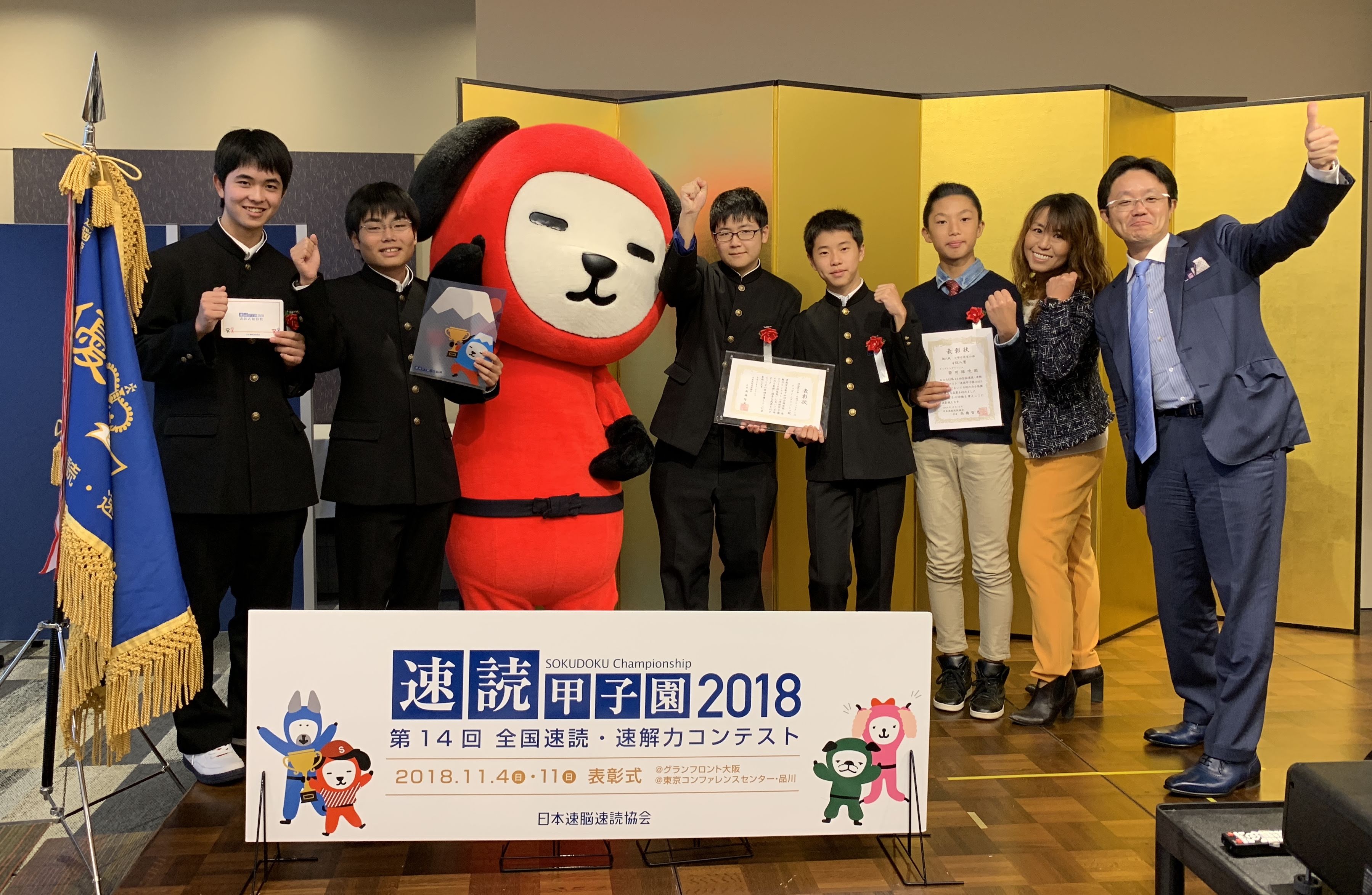2018年の表彰式は東京へ。 秋には藤原和博先生を招いての講演会と速読甲子園富士山カップを開催。