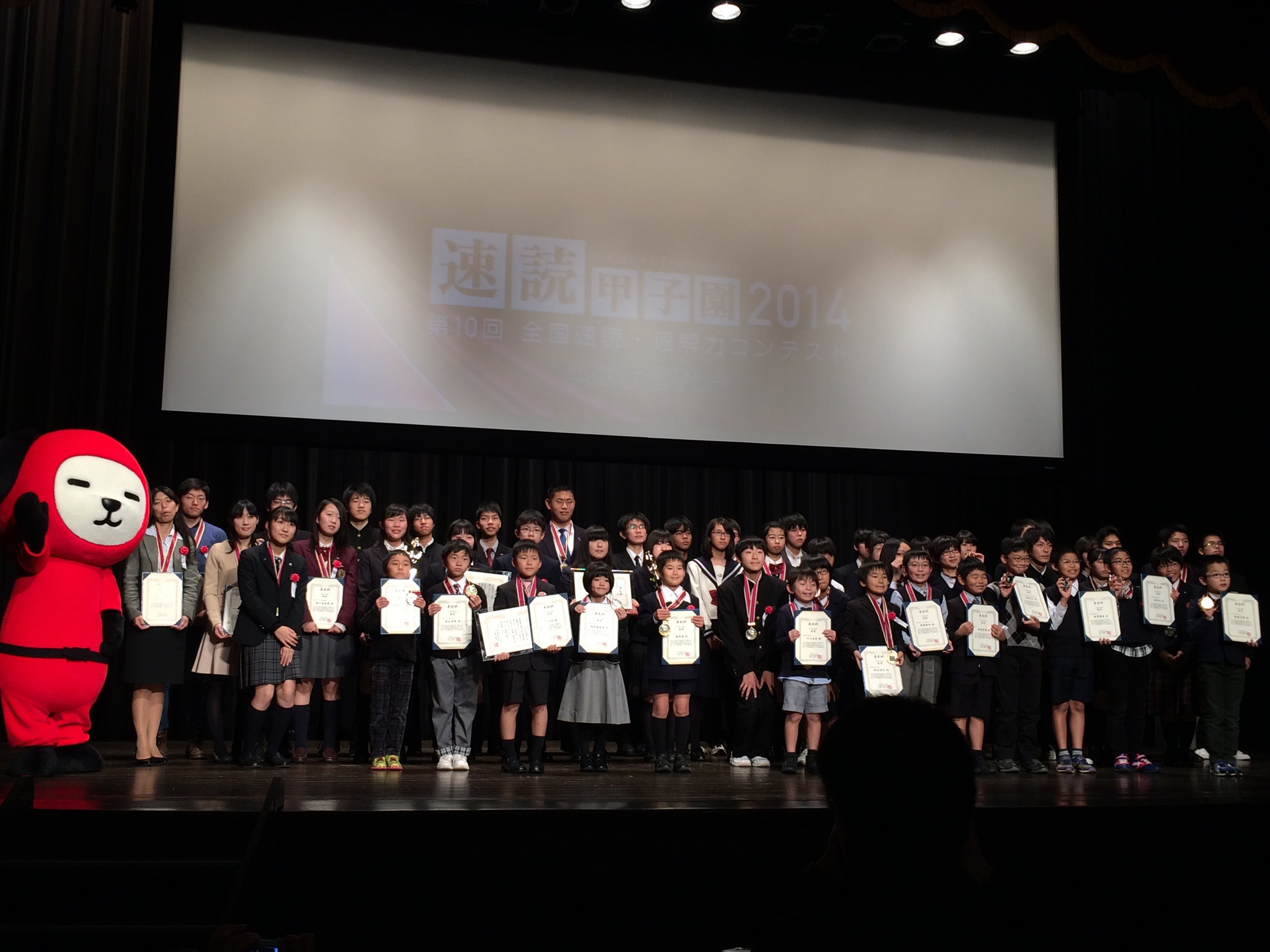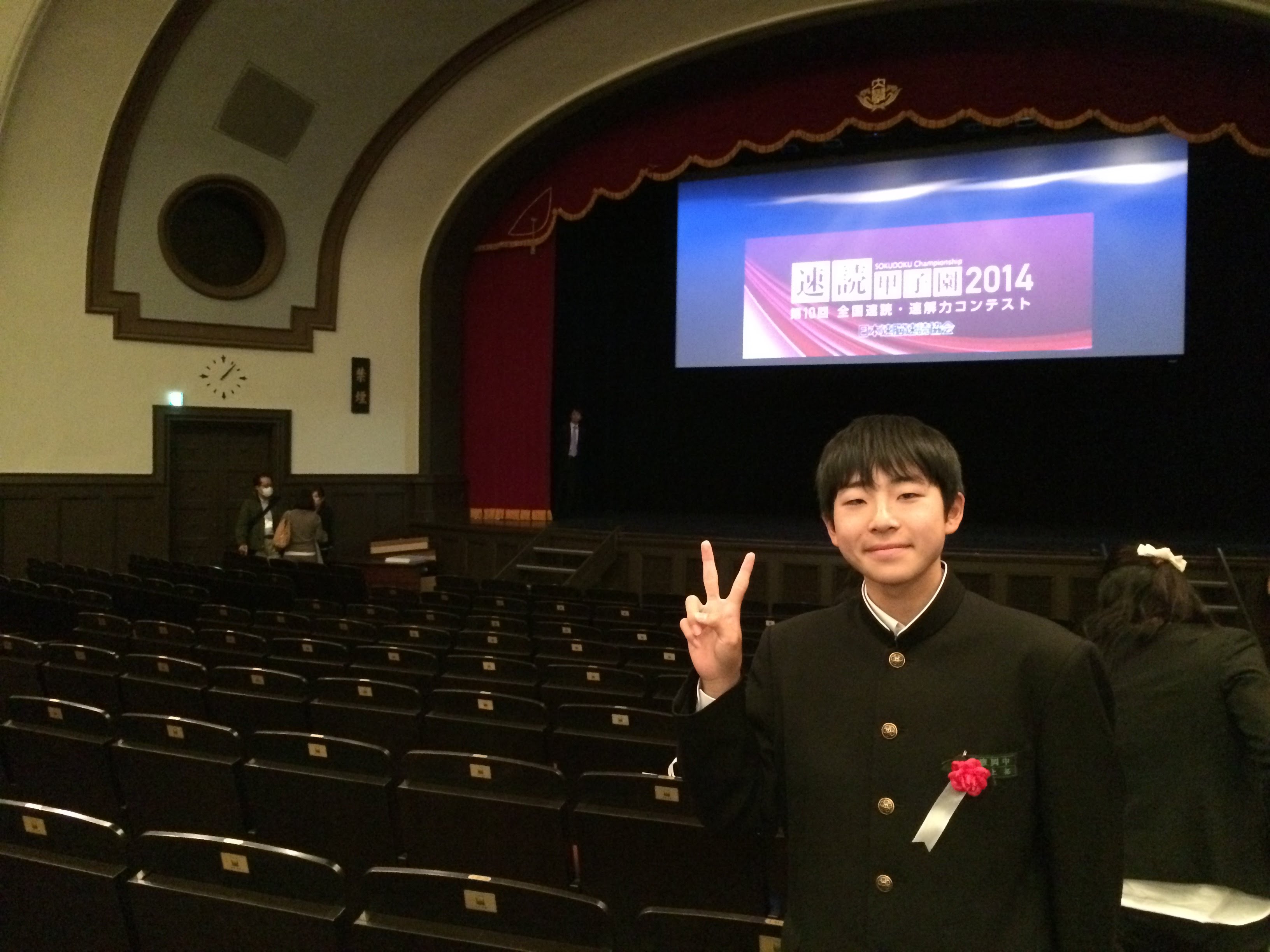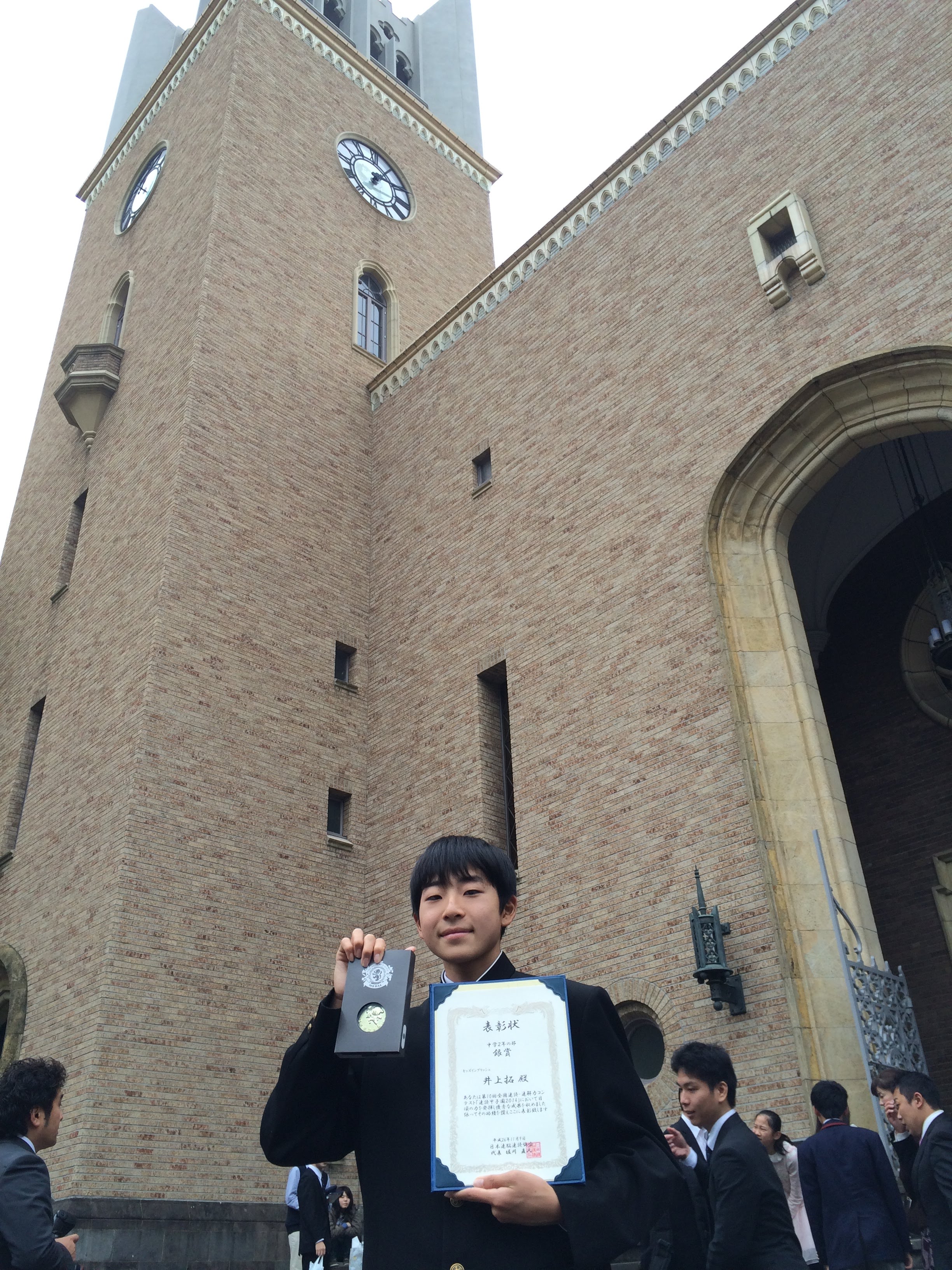 2014年 速読甲子園 キッズイングリッシュが速読を導入して2年目の夏の速読甲子園で井上拓くんが中学生全国2位に。早稲田大学の大隈講堂にて表彰式。
