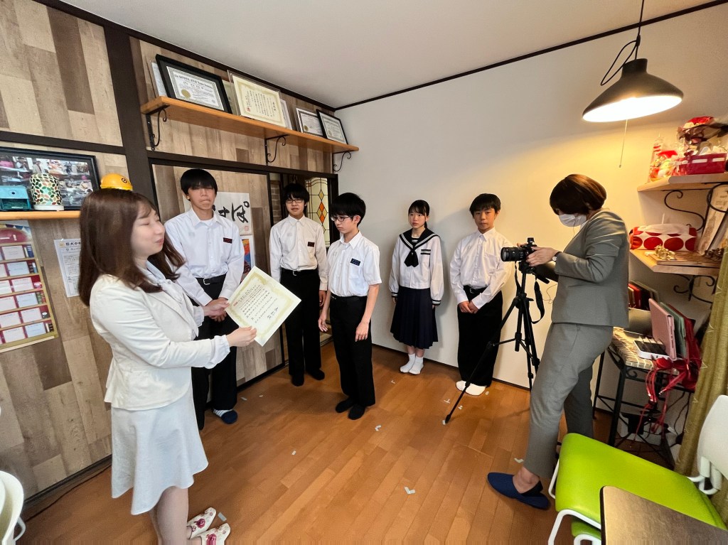 2021年度 後期 速読スピードマスターズに全国7位に入賞した記念に、速読協会の方々が直々に表彰式をしに教室に来てくださいました。